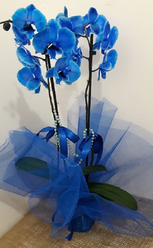 Çift Dallı Mavi Orkide Çiçek